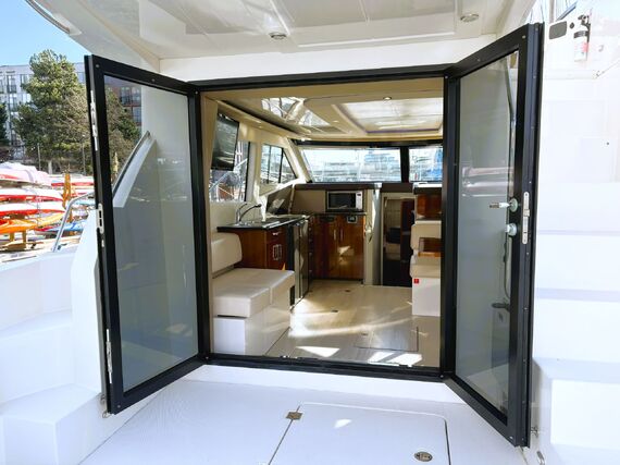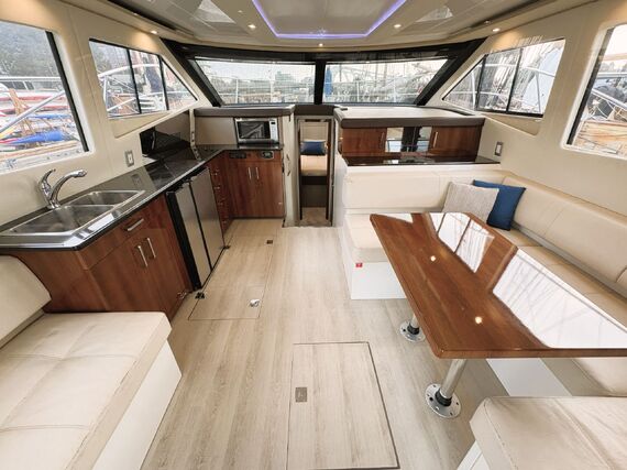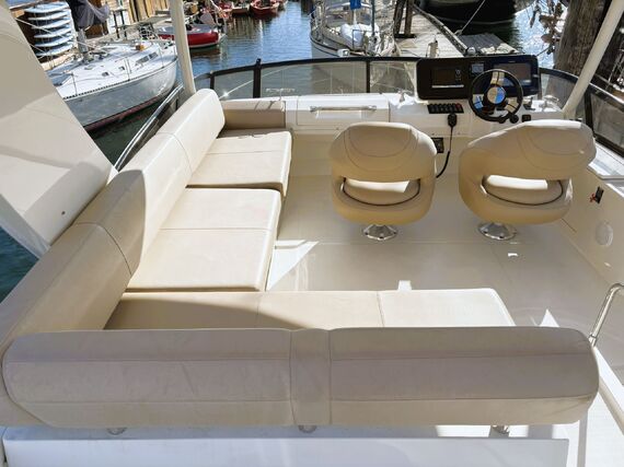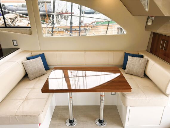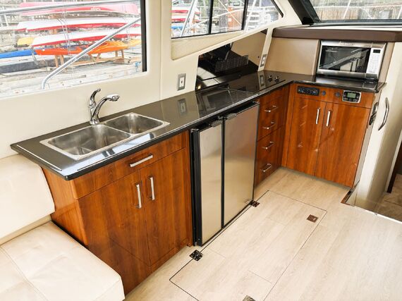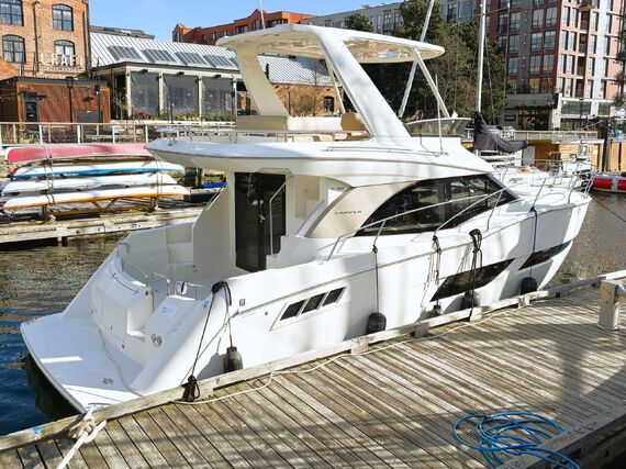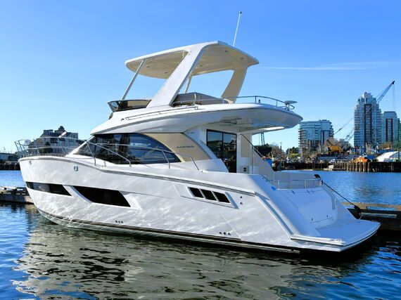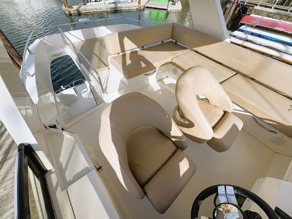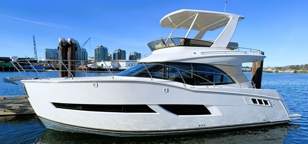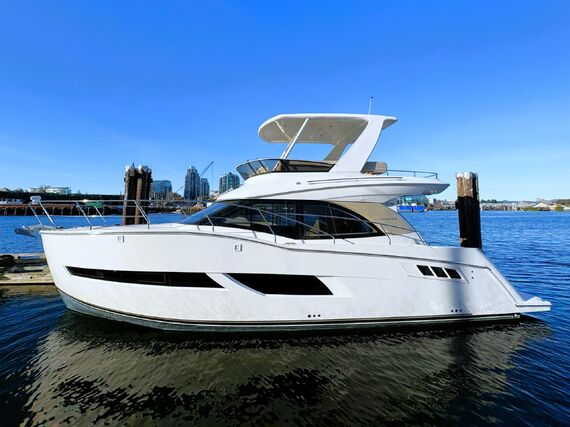 The Carver C40 is a luxurious and stylish vessel that boasts abundant room for cruising and entertaining. The exterior has a spacious cockpit with an easily accessible swimgrid, large sunpads on the bow and upper deck, and a well equipped bridge for navigation and entertaining. The interior is open and bright throughout, with generous windows and double doors to expand the space into the cockpit. The private master stateroom features a large island bed and an ensuite head with shower stall. Guests can be accommodated in their own private stateroom with ensuite head, and in the convertible salon berth. Features include bow thruster, heater & air conditioning, electric windlass, genset, chartplotter, sounder, VHF, TVs, and more! High performance power is provided by twin Cummins 380 hp diesel engines with very low hours. Contact us today for more info and to view this exciting vessel!