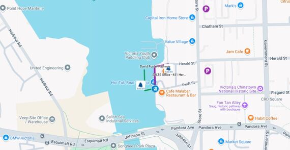- Victoria Harbour Ferry provides a fun, local experience to get from a number of docks around Victoria’s Harbour to the SALTS Dock (Chinatown Dock stop).